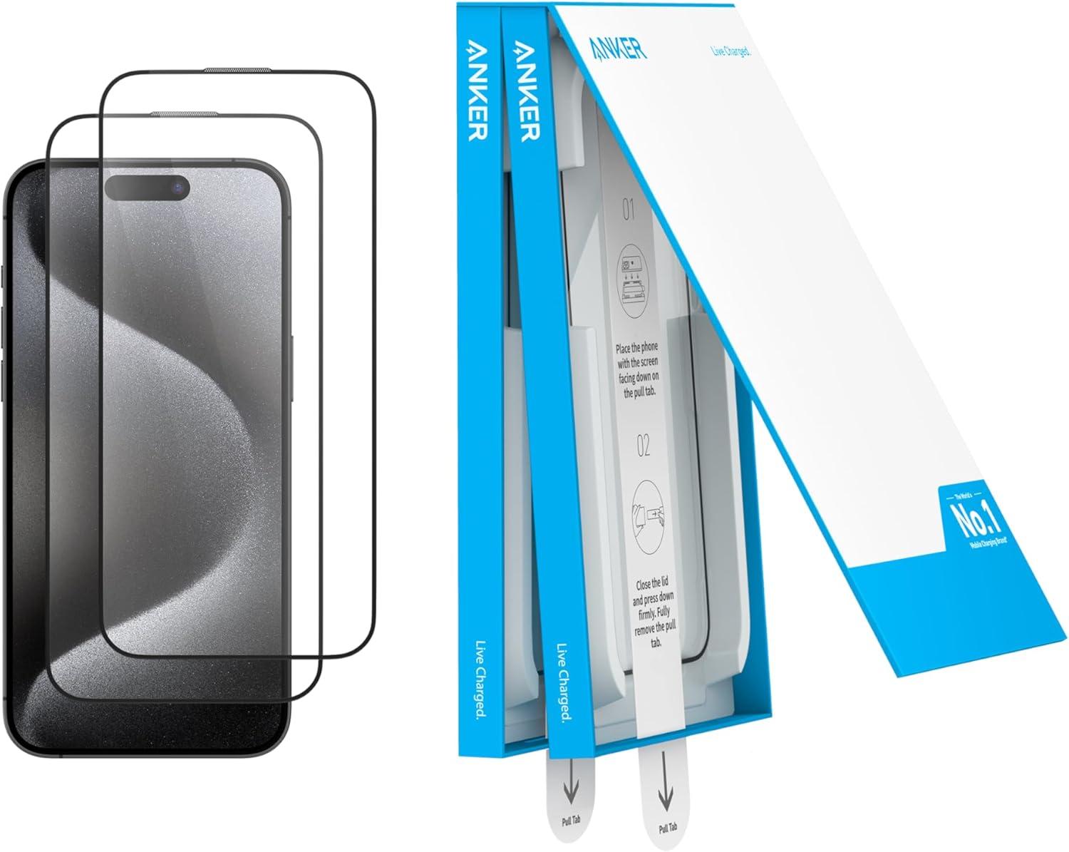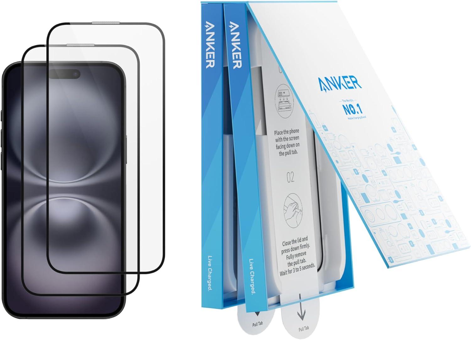 Anker Screen Protector, Bubble-and-Dust-Free iPhone HD Tempered Glass, Durable and Drop-Proof with 9H Hardness, Easy Installation Exclusively for iPhone 16 Pro Max 6.9-Inch (2-Pack)(Crystal-Clear)